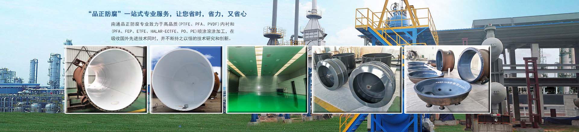 南通品正防腐科技有限公司由從事多年的專業技術人員和工程師組成,目前公司內襯和噴涂所用原材料全部為國際國內品牌,如瑞士工程、法國3P、意大利GF、日本華爾卡、山東東岳、日本大金、美國蘇威、美國華福均為我我司長期合作伙伴。針對不同工沉條件下例如:含有氟、氯、溴、碘、堿、有機溶劑等強腐蝕滲透、高溫高真空驟冷驟熱的環境,我們愿與用戶共同探討、研究和改進,提供可靠的鋼襯防腐設備解決方案,確保我司提供的鋼襯防腐設備符合用戶的工況使用條件。